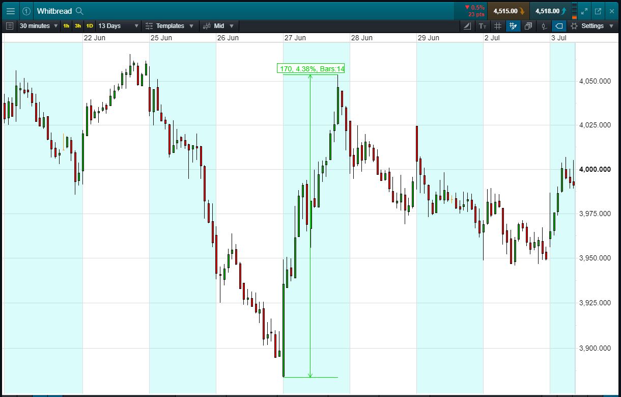- The chart shows the price movement last time Whitbread reported: Q1 Trading Update, 27 June.
