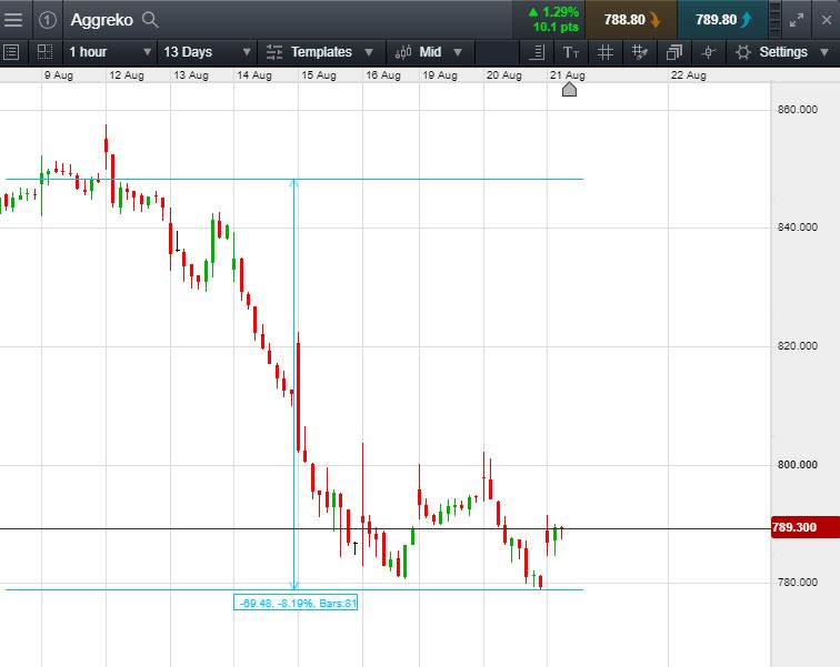 - Aggreko fallen over 8.19% from August highs.