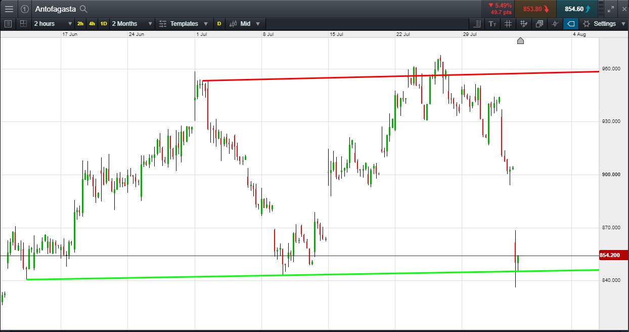 Will Antofagasta continue falling, or will it recover to 950p last week’s highs? (+12%)