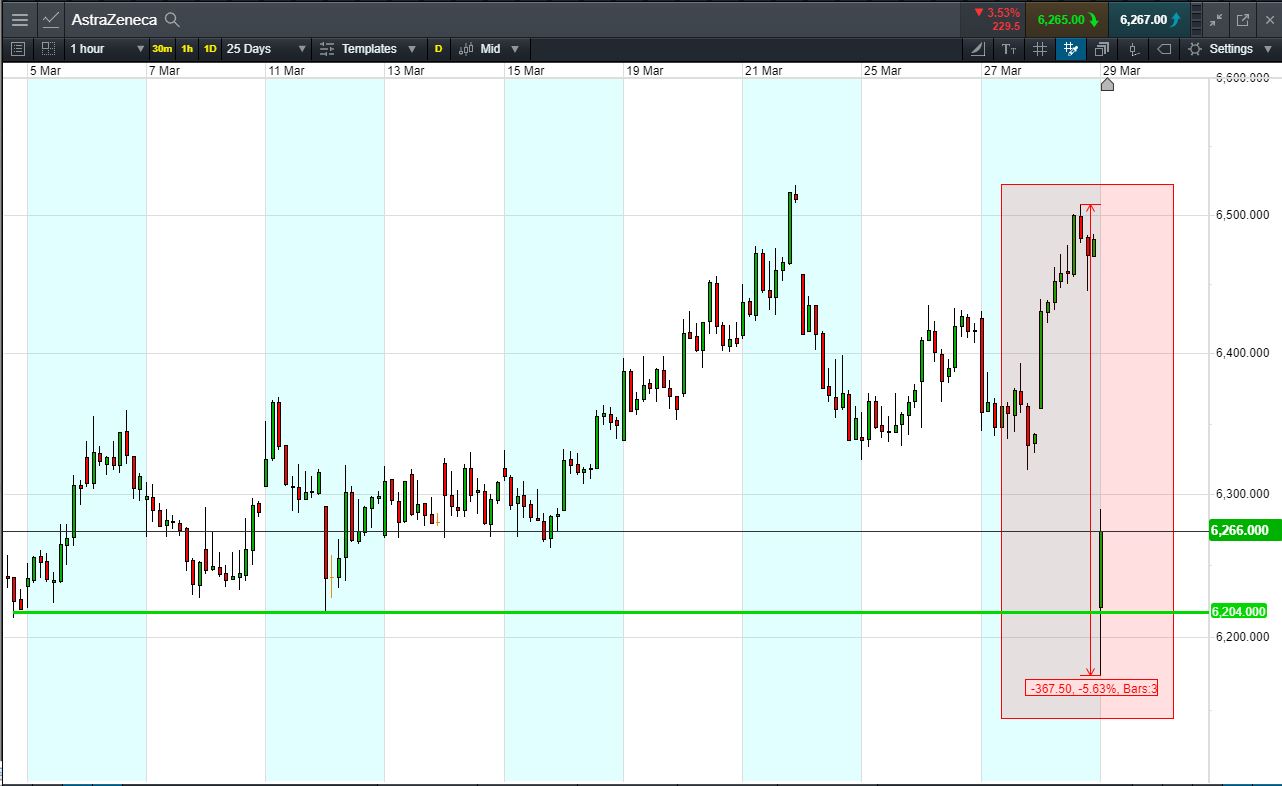 Let’s assume AstraZeneca recovers back to 6522p recent highs (+4%). Your profit would be £400, from your initial investment of £2,000.