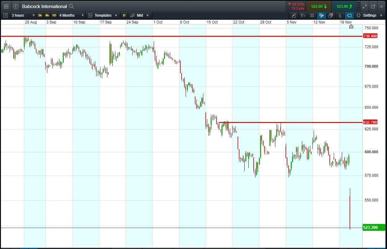 - Babcock shares have fallen over 11% today to trade 523p (at time of writing).