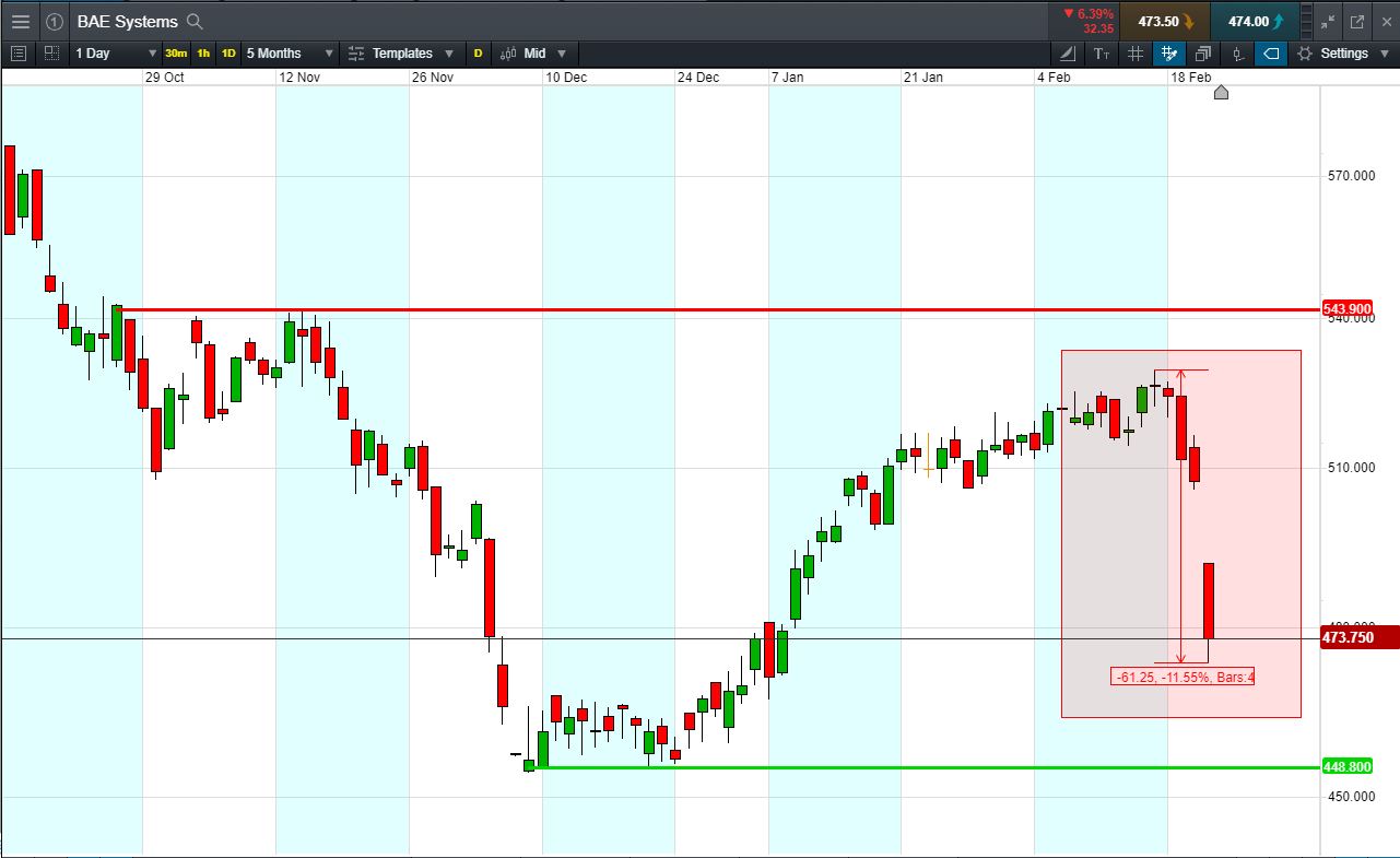 - BAE Systems shares -11.5% from Feb highs; -6% today