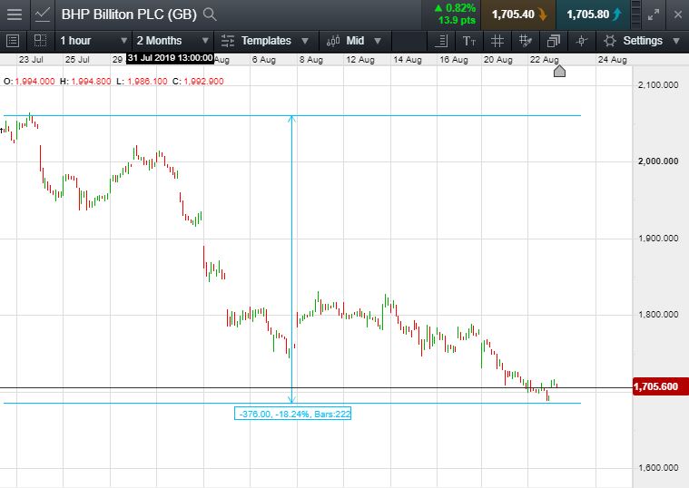 - BHP Billiton fallen over 18% from July highs.