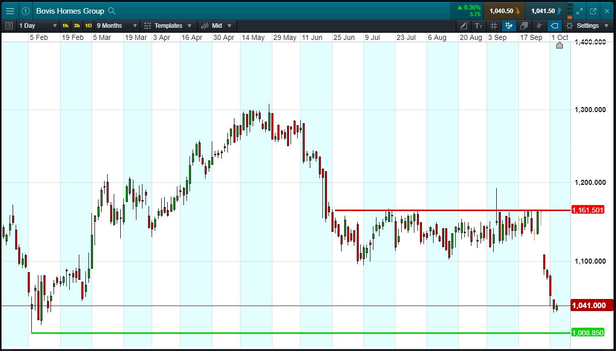- Bovis shares have fallen by 10% from recent highs to trade 1041p (at time of writing)