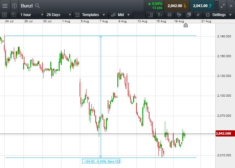 Will Bunzl continue falling, or will it recover to 24th July levels of 2190?