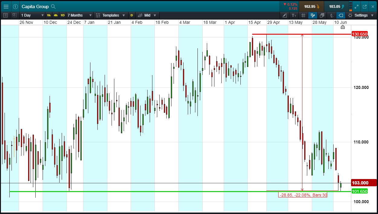 Let’s assume Capita recovers back to 130p highs (+26%). Your profit would be £2600, from your initial investment of £2,000.