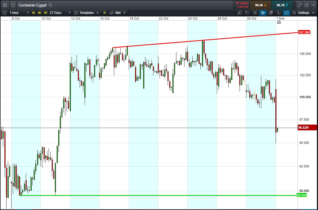- Centamin shares have fallen close to 9% in the past 2 weeks to trade 96p (at time of writing).