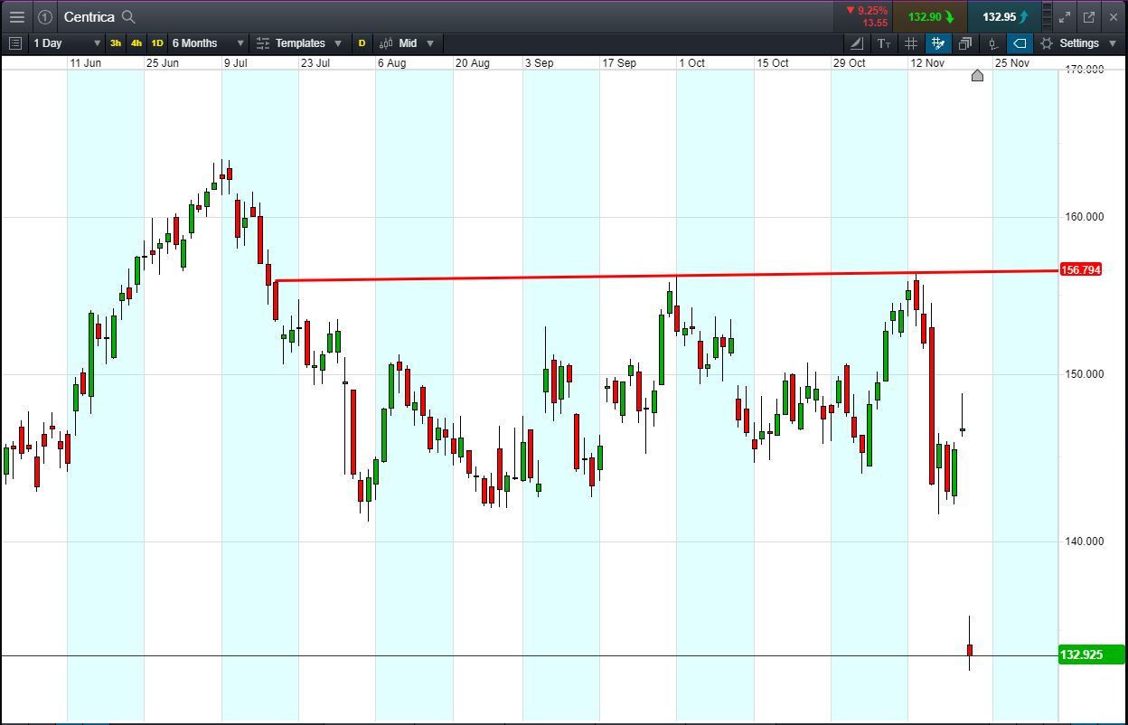 • Centrica shares have fallen over 9% today to trade 132p (at time of writing).