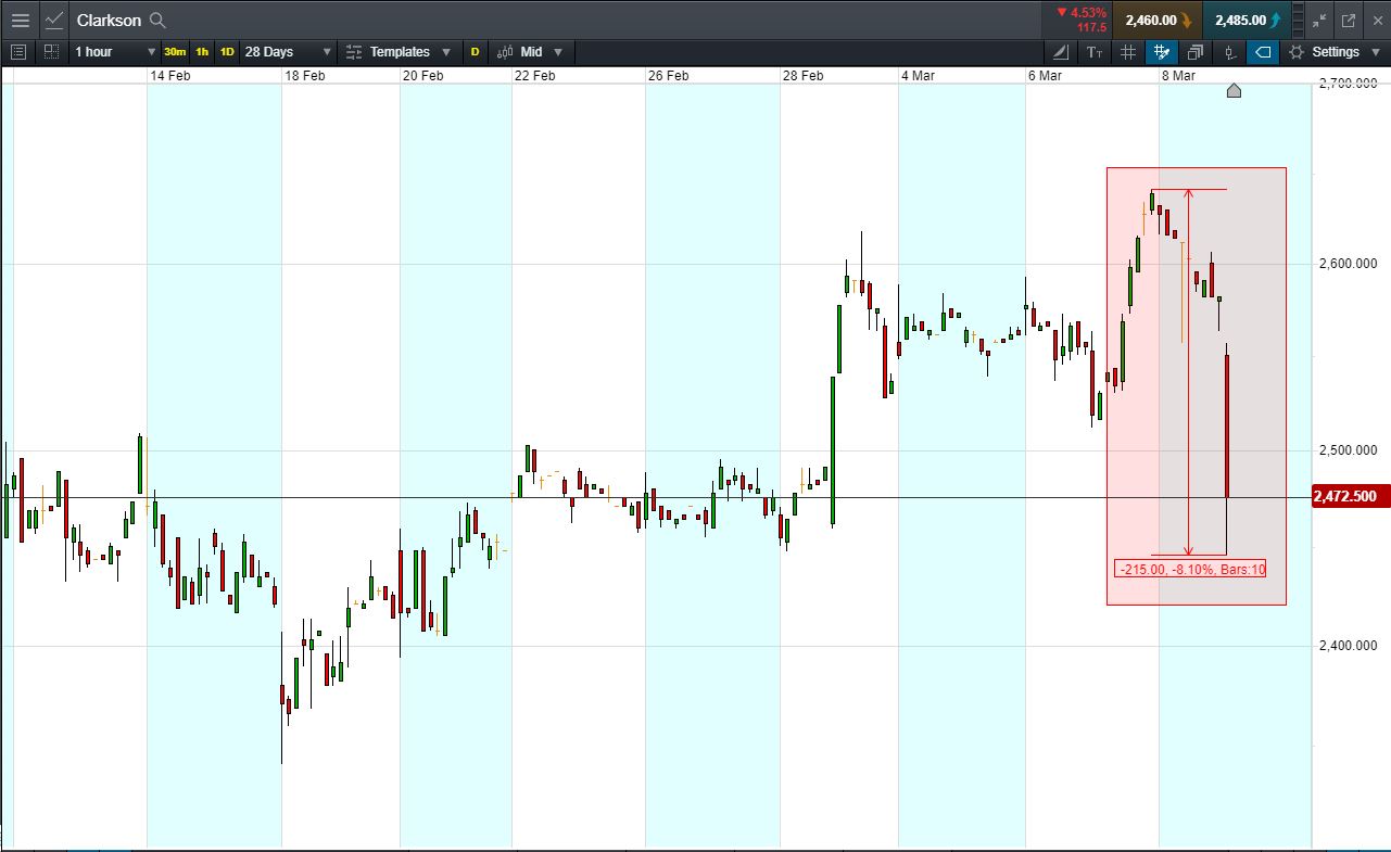 Will Clarkson continue falling, or will it recover to 2655p recent highs?