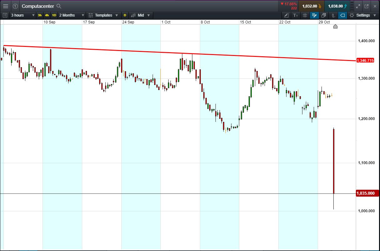 - Computacenter shares have fallen almost 18% today to trade 1032p (at time of writing).
