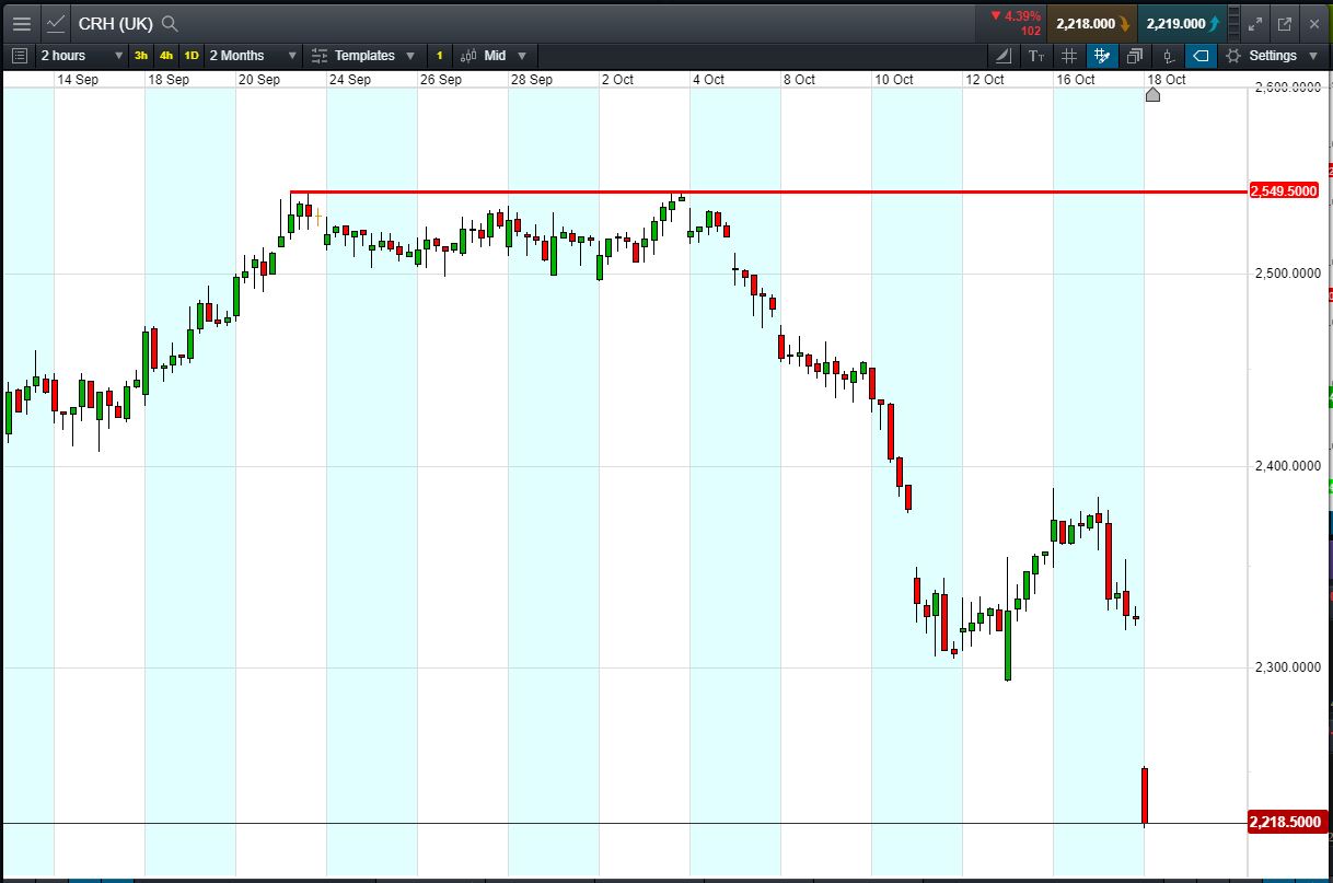 - CRH shares have fallen over 12% in 2 weeks to trade 2,218p (at time of writing).