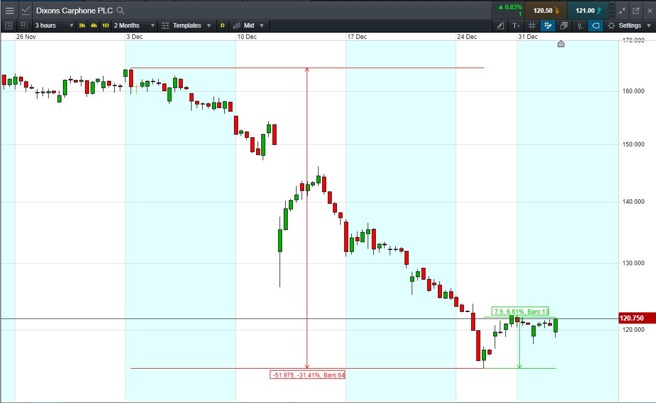 Let’s say you feel that the stock is a bargain and you think it could bounce back to December high of 165p. You decide to buy exposure to £10,000 worth of Dixons Carphone using a CFD, at the current price of 120p. To do this, you need £2,000.