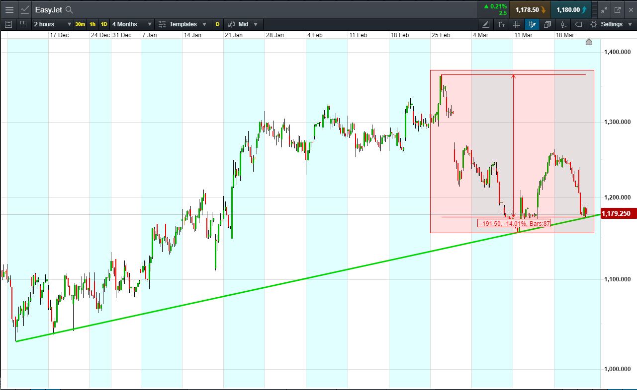 Let’s assume easyJet recovers back to 1263p recent highs (+7.1%). Your profit would be £710, from your initial investment of £2,000.