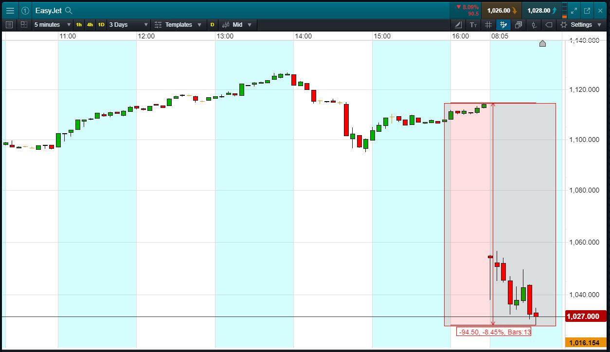 - easyJet shares -8% today to trade 1027p (at time of writing).