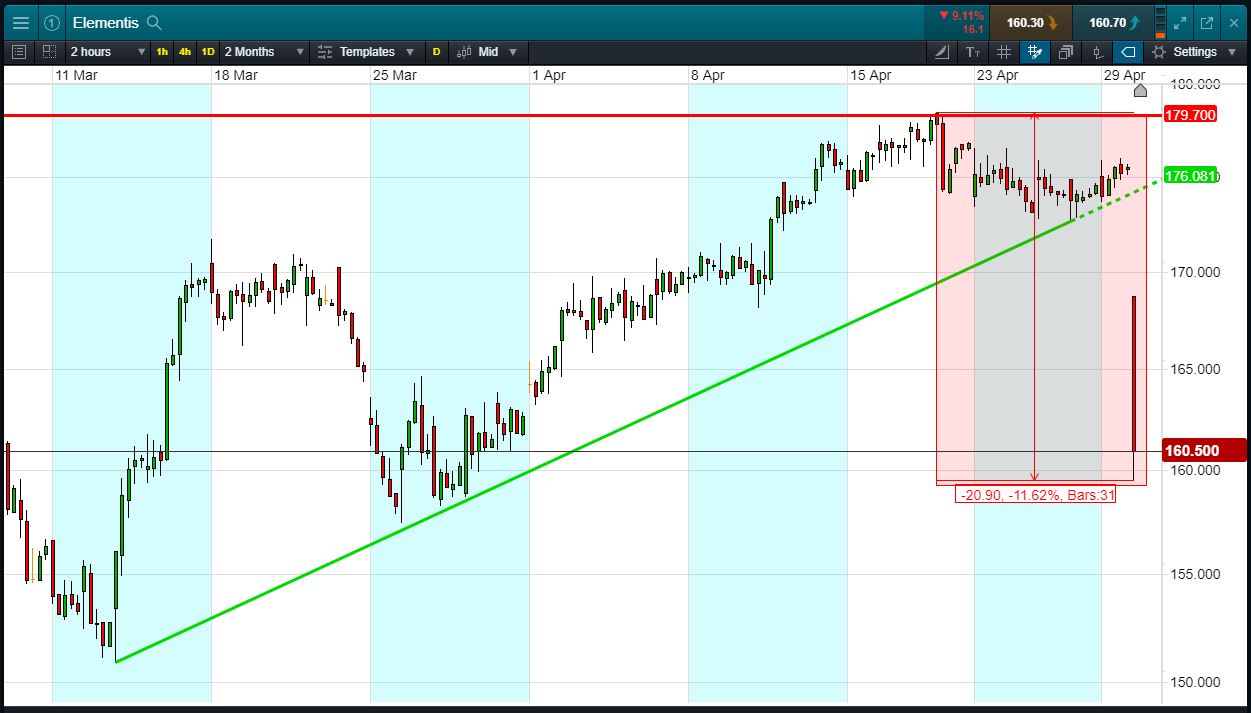 Will Elementis continue falling, or will it recover to 179p April highs?