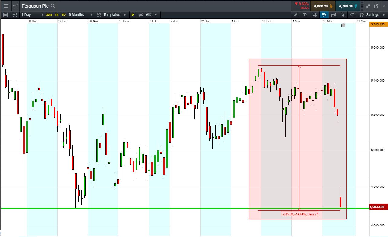Let’s assume Ferguson recovers back to 5388p recent highs (+14.8%). Your profit would be £1480, from your initial investment of £2,000.