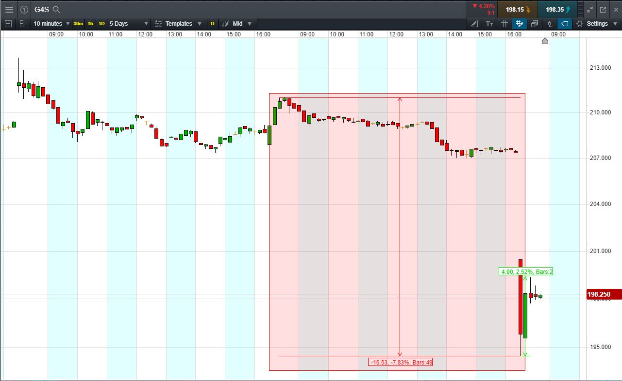 Will G4S continue falling, or will it rise again back to 211p yesterday’s highs?