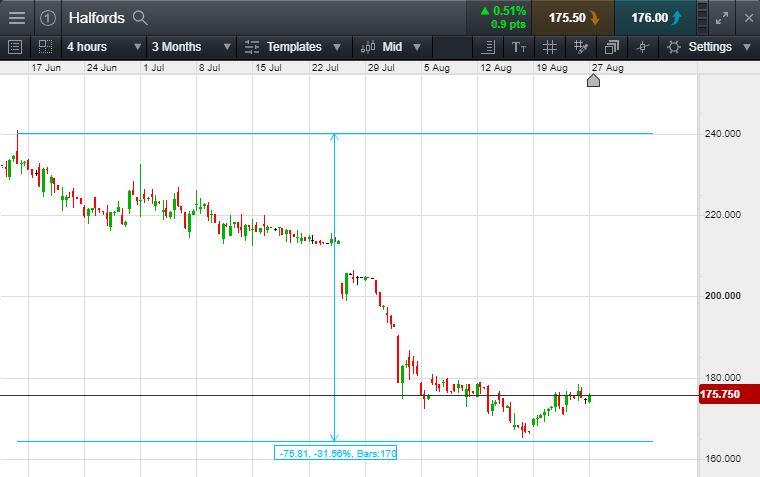 Will Halfords continue falling, or will it recover to 240p June 14th highs?