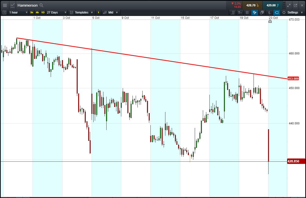 • Hammerson shares have fallen over 7.5% in the past month to trade 428p (at time of writing).