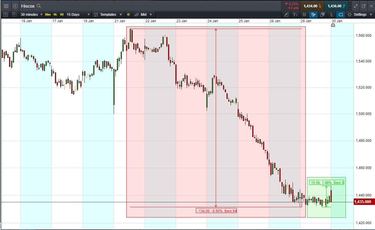 Let’s assume Hiscox recovers back to 1565p recent highs (+9%). Your profit would be £900, from your initial investment of £2,000.