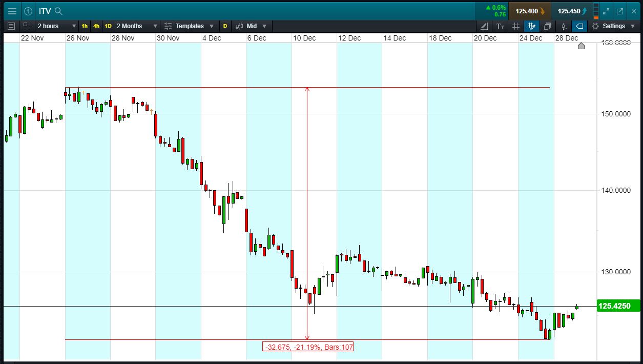 Will ITV continue falling, or will it rise again back to recent 154p highs?