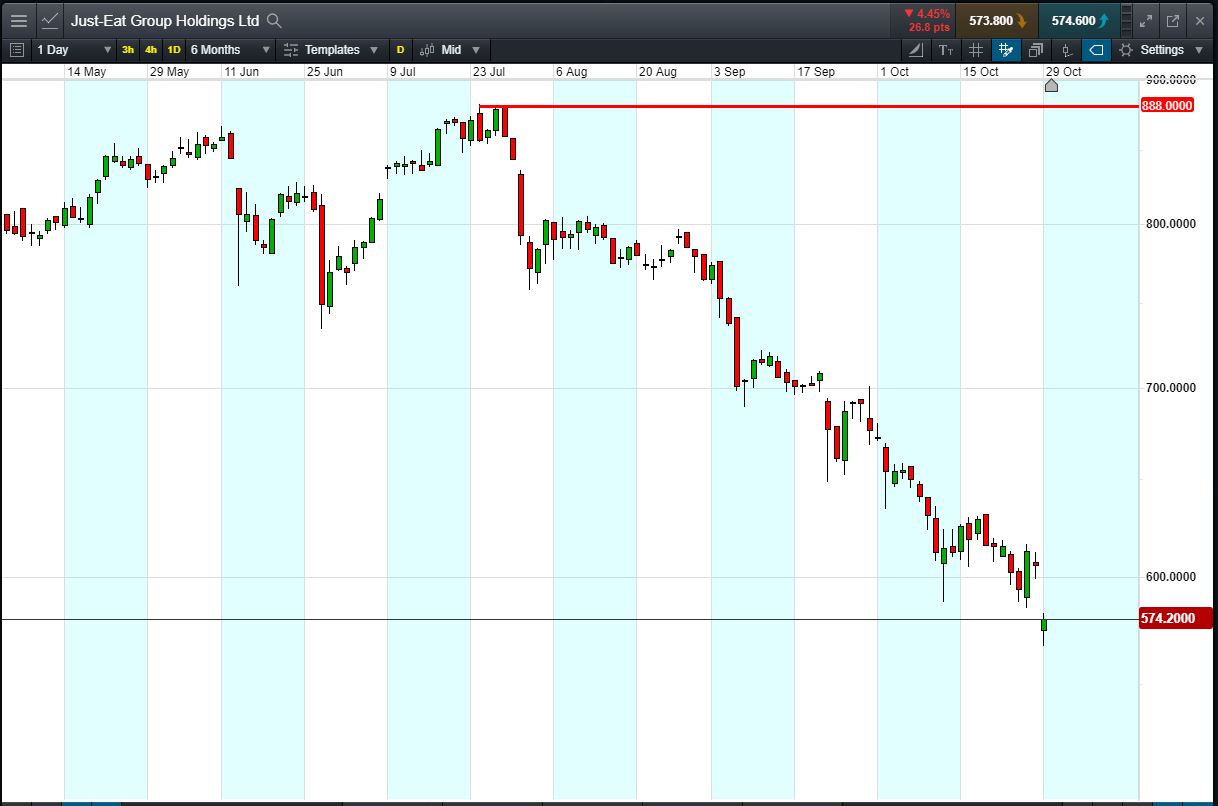 - Just Eat shares have fallen close to 15% in the past month to trade 575p (at time of writing).