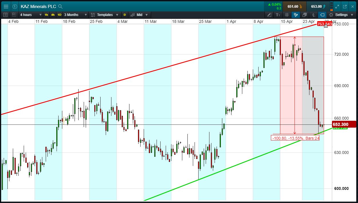 Let’s assume KAZ Minerals recovers back to 743p April highs (+14.1%). Your profit would be £1410, from your initial investment of £2,000.