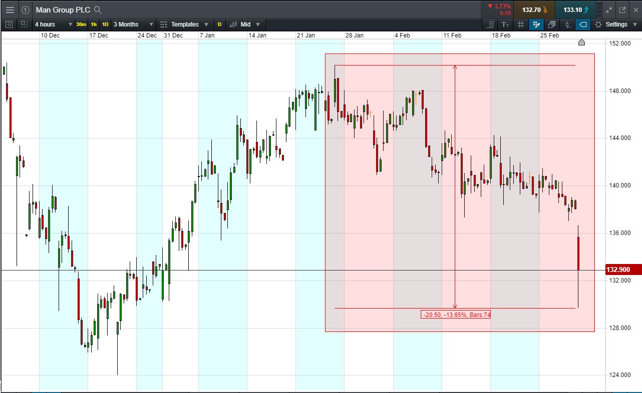 - Man Group shares -4.4% today after results, shares – 13.6% from Jan highs.