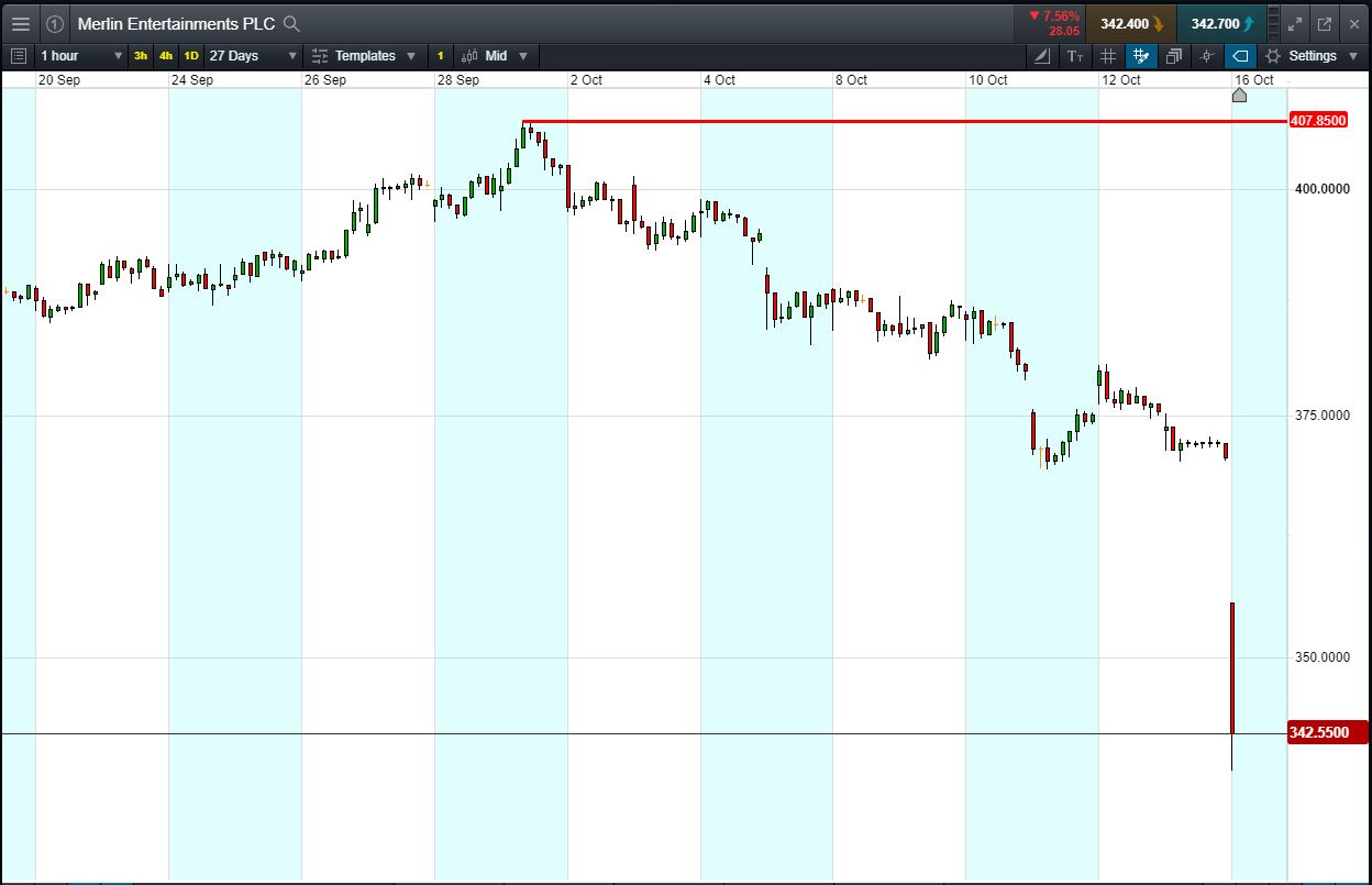 - Merlin Entertainments shares have fallen 11% in the week to trade 341p (at time of writing).