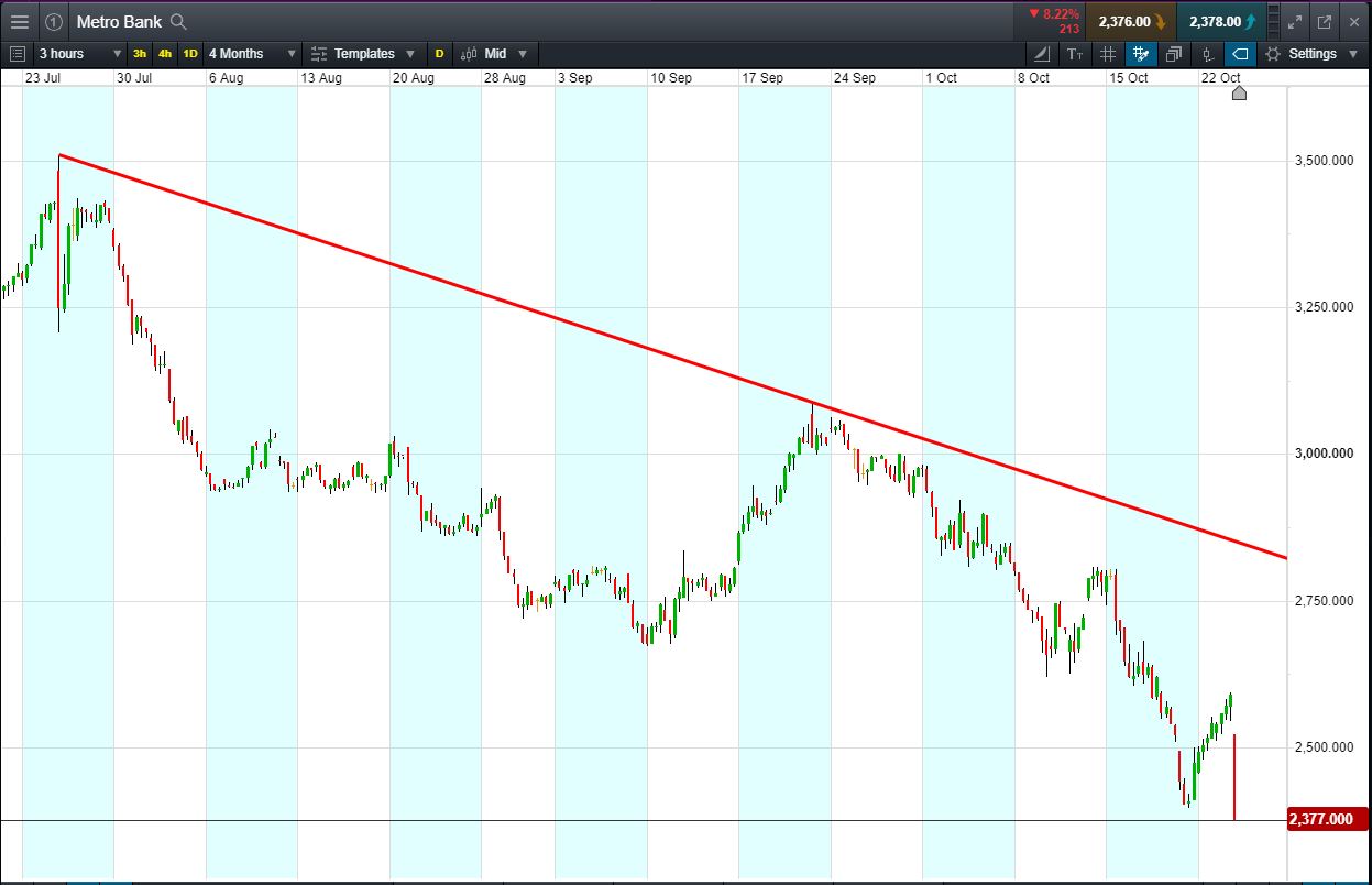 - Metro Bank shares have fallen close to 20% in the past month to trade 2,354p (at time of writing).