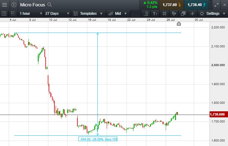 Will Micro Focus continue falling, or will it recover to recent 2170p highs (+20%)?