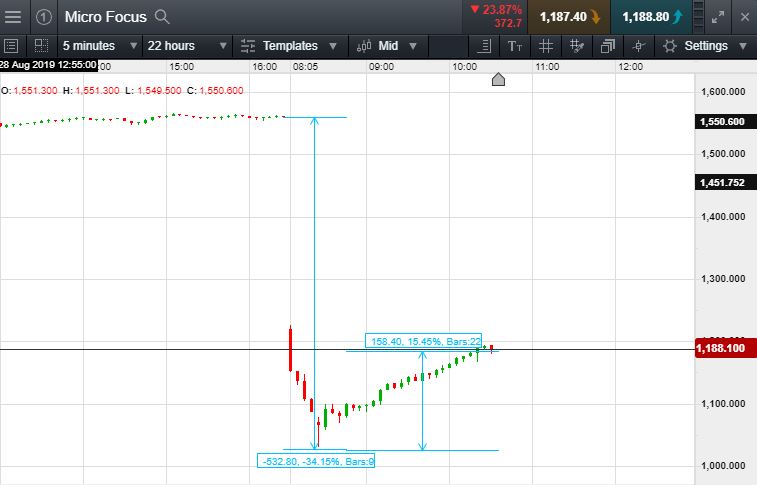 Will Micro Focus continue falling, or will it recover to recent 1561p highs (+25%)?