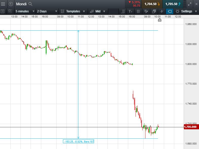 Will Mondi continue falling, or will it bounce back from here to yesterday’s levels of 1850p?