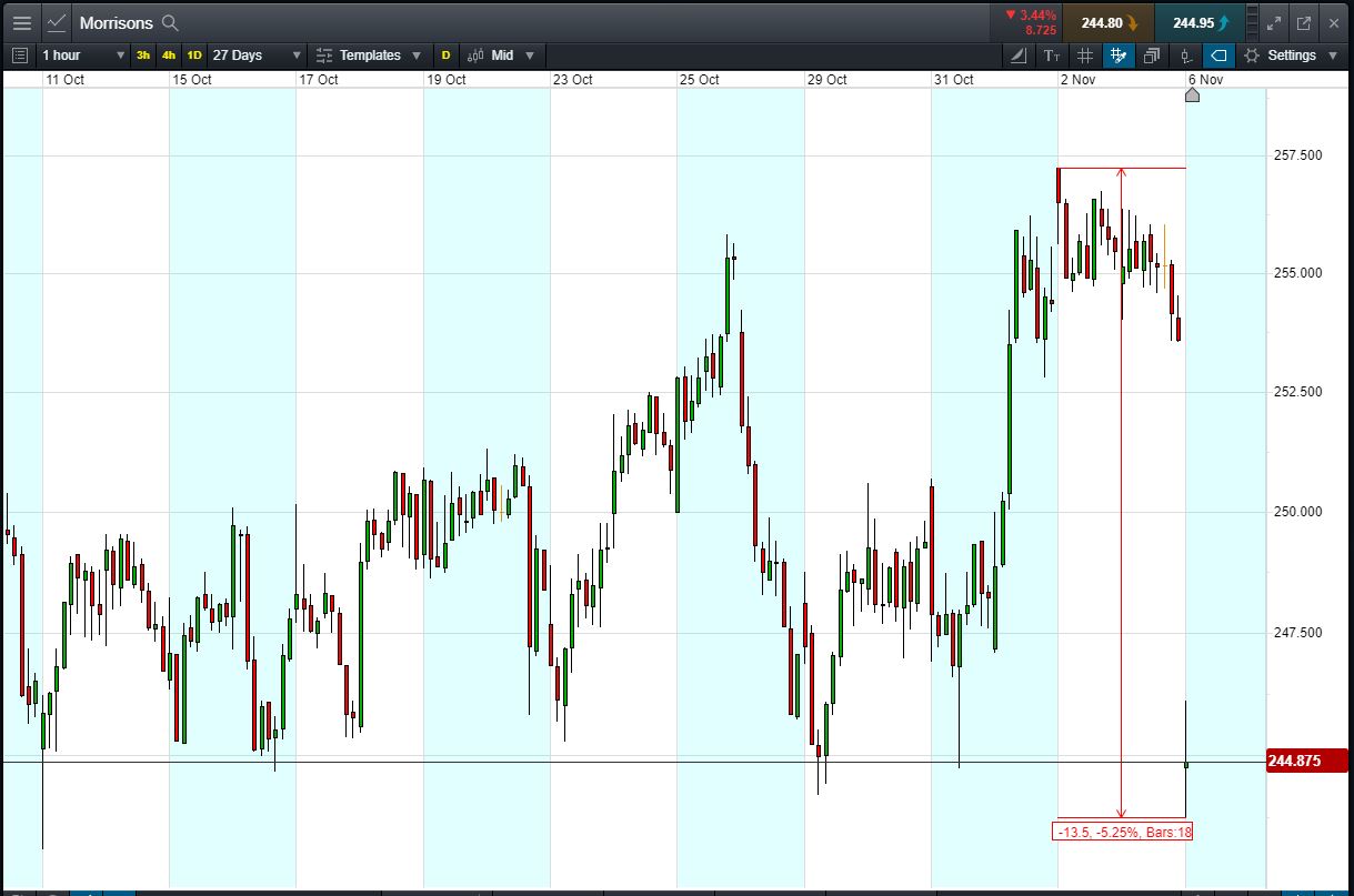 • Morrisons shares have fallen 3.6% today after disappointing trading update.