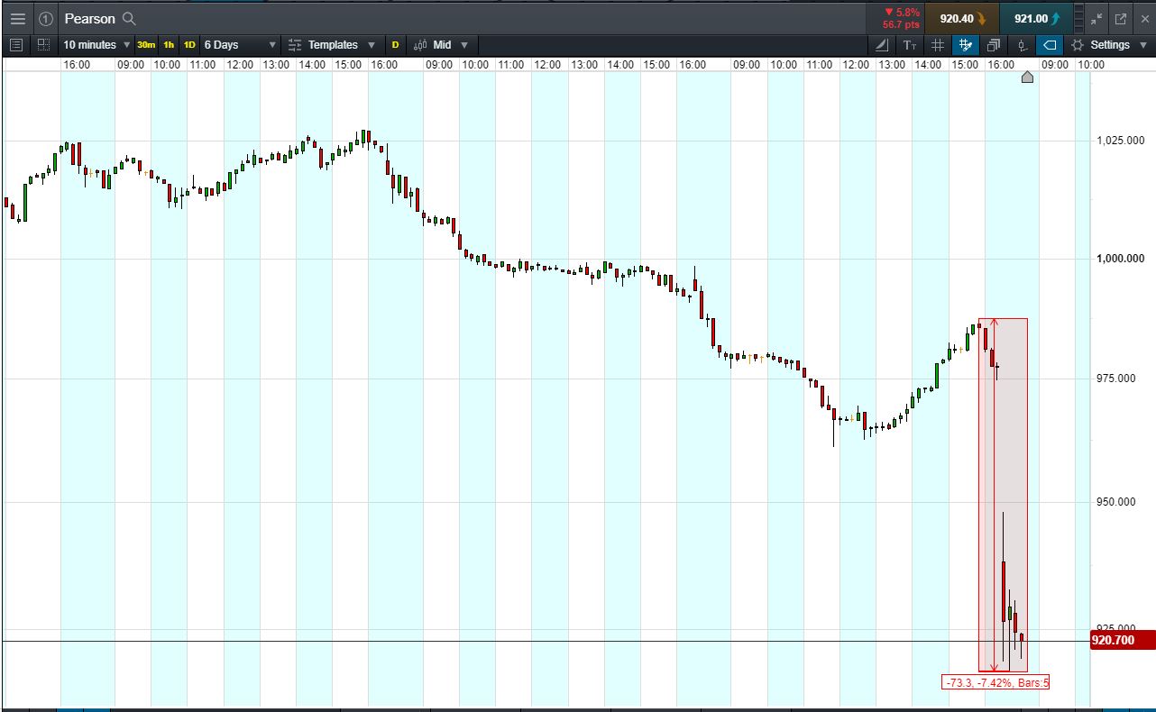 • Pearson shares have fallen as low as -7.4% since yesterday’s highs.