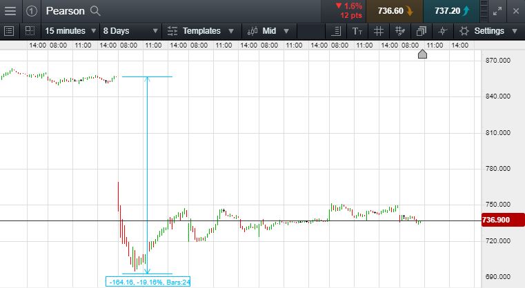 - Pearson shares have fallen as low as -19.6% since last weeks’s highs.