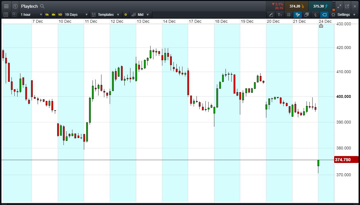 - Playtech share price -5.8% today; now trading at 372p (at the time of writing).