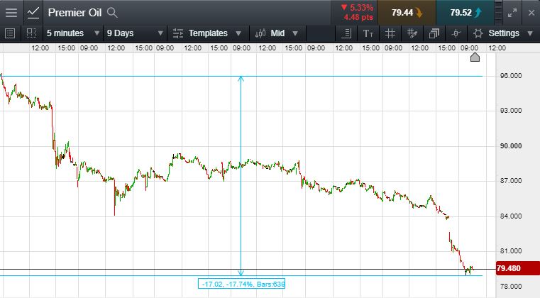 Will Premier Oil continue falling, or will it rise again back to September 17th’s high of 96p (+17%)?