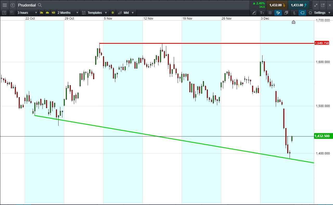 Will Prudential continue falling, or will it rise again back to recent 1649p last week’s highs?