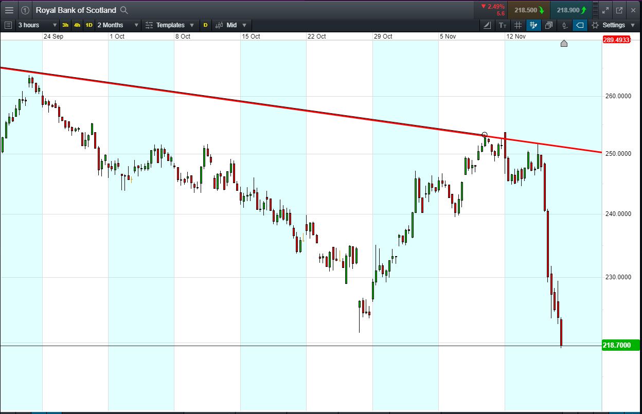 - RBS shares have fallen over 12% in the past 2 days to trade 218p (at time of writing).