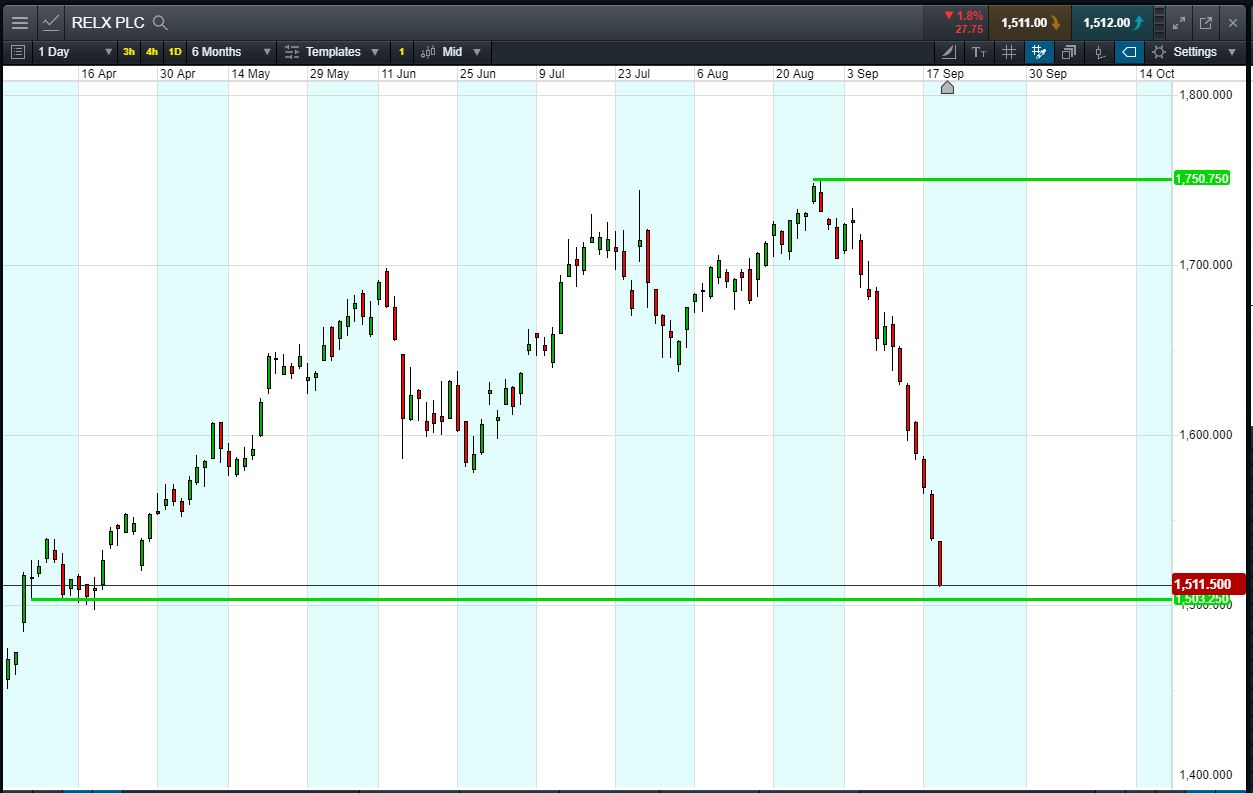 Let’s say you feel that the stock is a bargain and you think could bounce back towards August level of 1,750p again. You decide to buy exposure to £10,000 worth of RELX using a CFD, at the current price of 1,511p. To do this, you need £2,000.