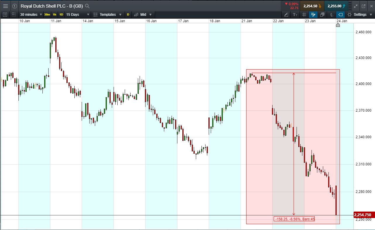 - Royal Dutch Shell fallen over 6.5% this week, -1% today.