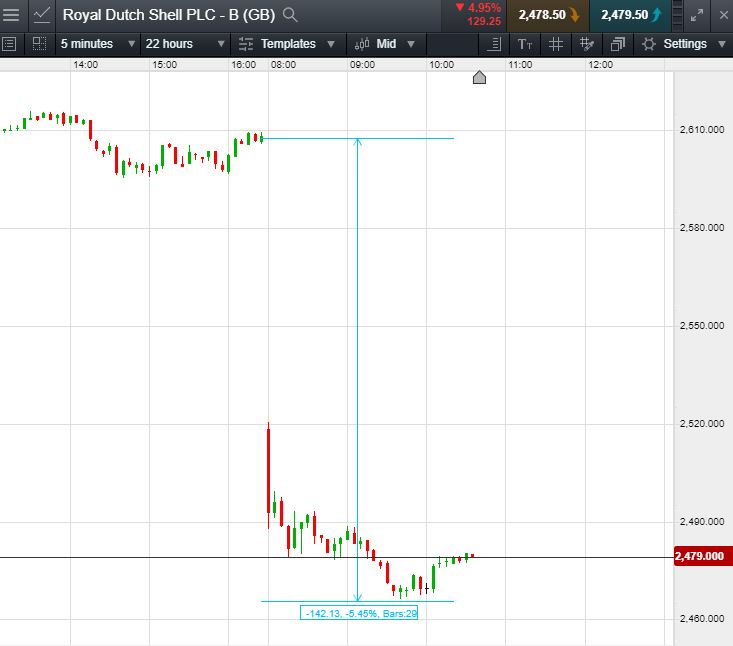 Will Royal Dutch Shell continue falling, or will it rise again back to 2610p yesterday’s highs?
