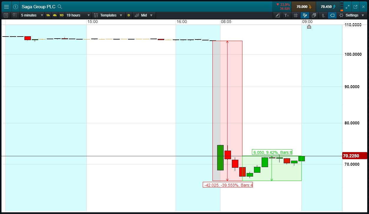 Let’s assume Saga recovers back to 106p highs (+51%). Your profit would be £5100, from your initial investment of £2,000.
