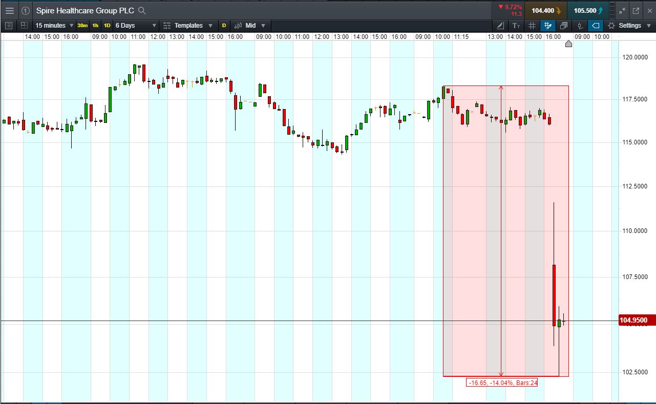 • Spire Healthcare shares have fallen as low as -15% today (15 Jan).