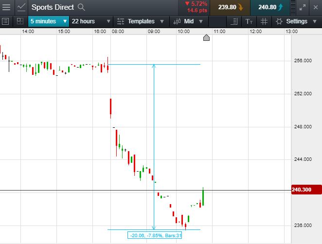 - Sports Direct shares have fallen 7.85% from yesterdays highs..