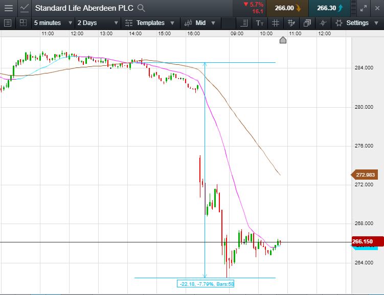 Will Standard Life Aberdeen continue falling, or will it rise again back to yesterdays 285p highs?