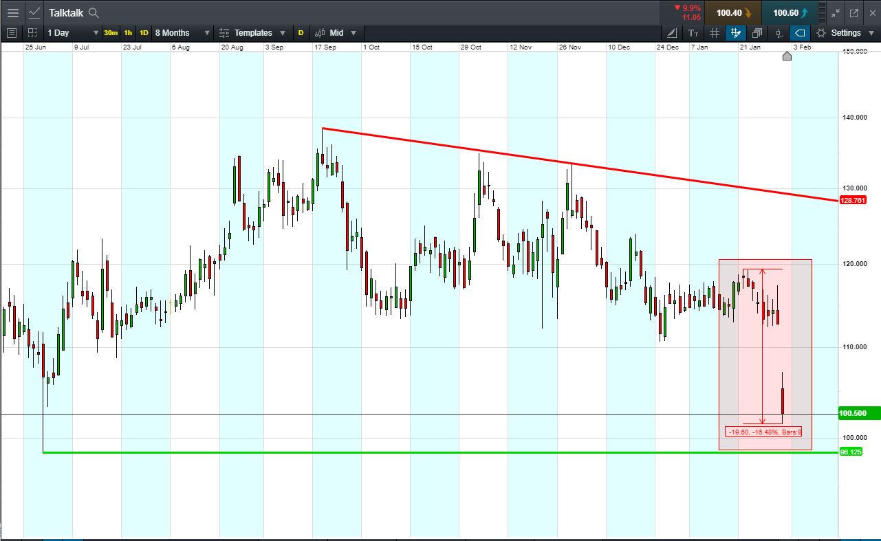 Will TalkTalk continue falling, or will it rise again back to 118p January’s highs?