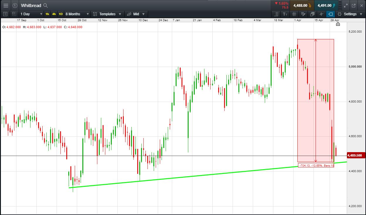 Will Whitbread continue falling, or will it recover to 5162p April highs?