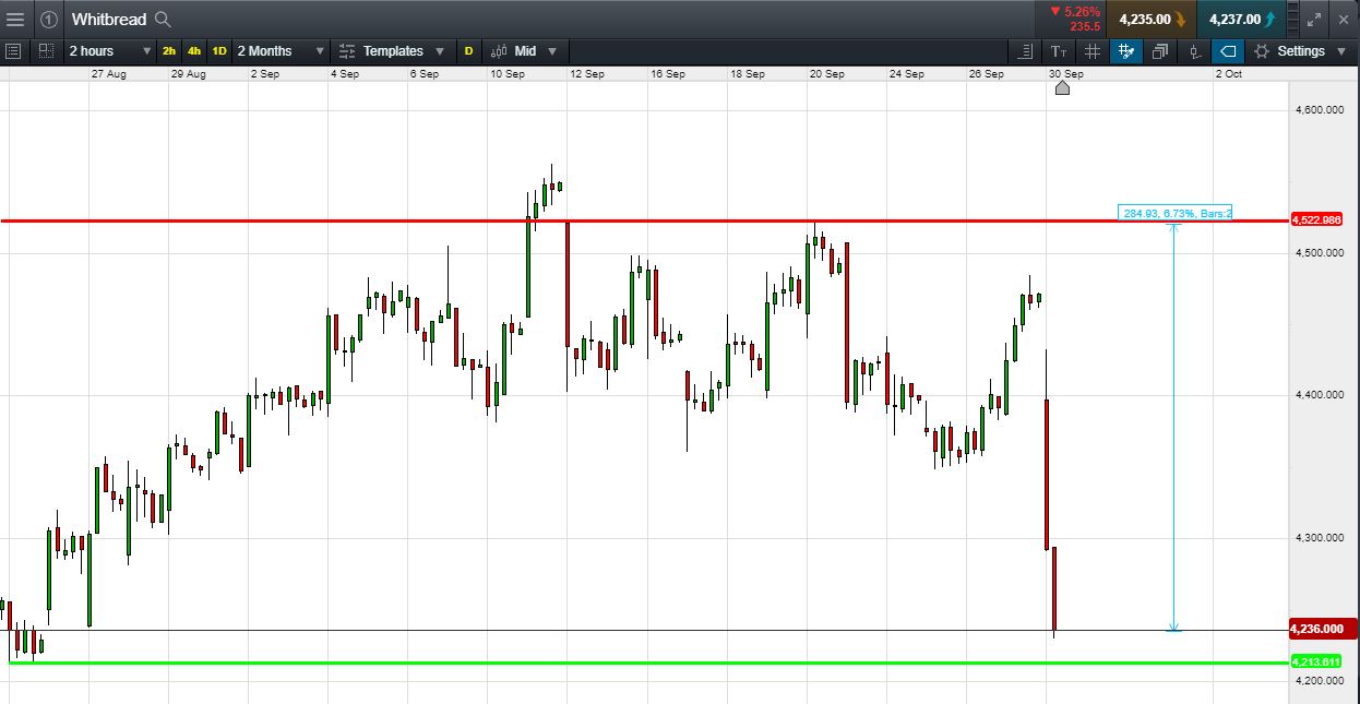 Will Whitbread continue falling, or will it recover to 4522p highs (+6.7%) ?